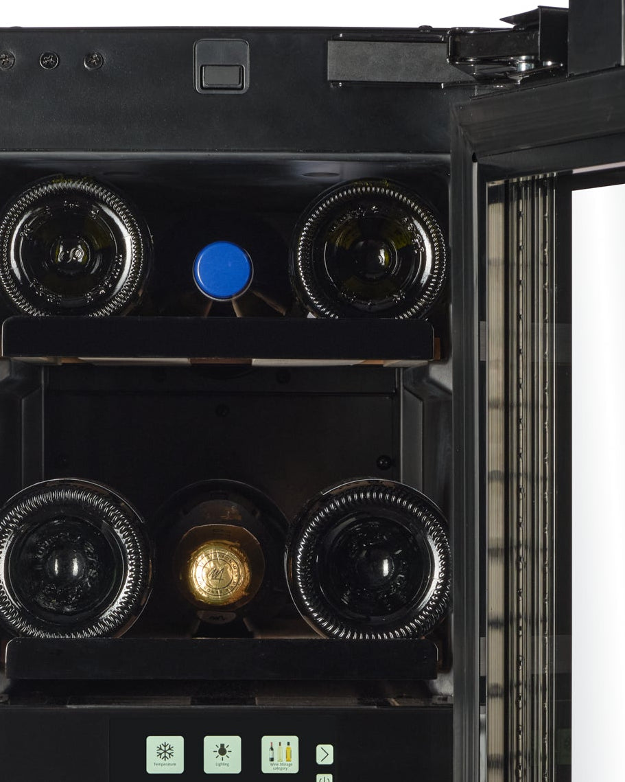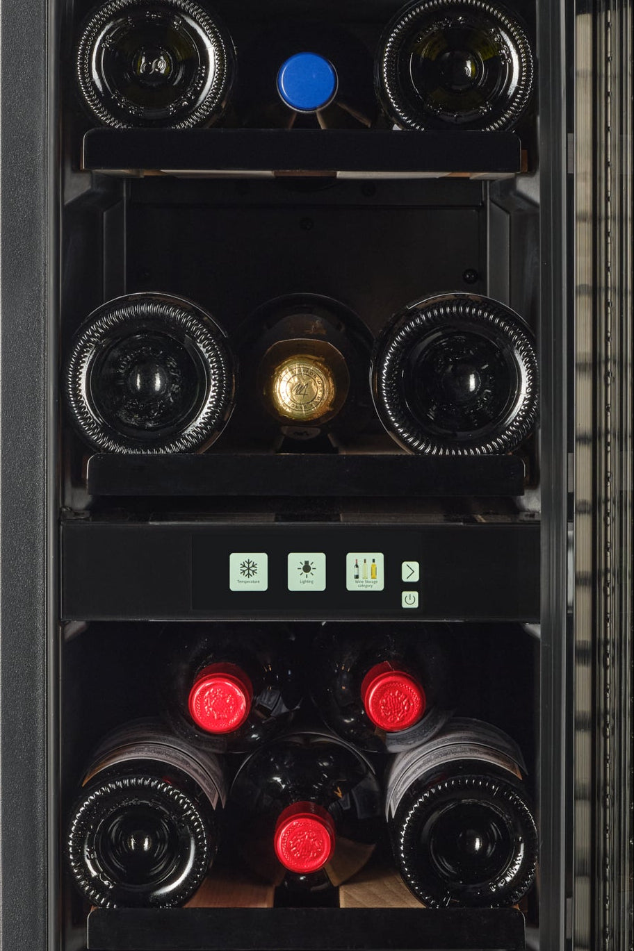 W18B-TO - Push 2 Open Wijnkoelkast - 18 Flessen - Zwart Glas
